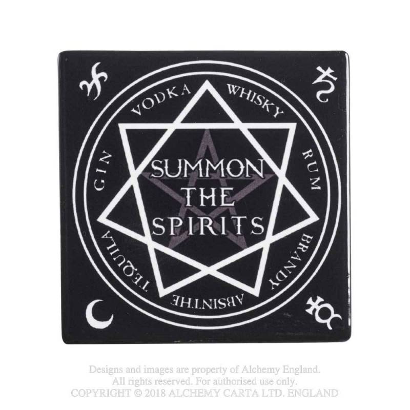 Can you ‘Summon up the Spirits’ with this occult inspired coaster. This coaster bares the names of some of the most well known spirits including, Gin, Vodka and whiskey.