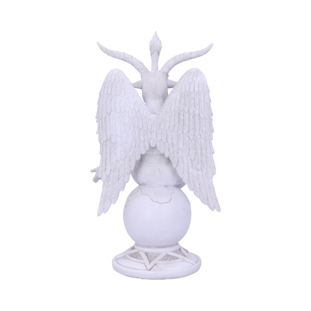 This mystical figurine is cast in the highest quality resin before being carefully hand-painted. Resting in the centre of a pentagram, the globe of the earth acts as Baphomets seat. Sitting cross-legged on top of the world, Baphomet sits, symbolizing the sum total of the universe. Legs ending in cloven hooves, the staff of Asclepius rises from their crotch. Their right arm is raised in a magical blessing with the word SOLVE written on their forearm, while their left arm is stretched downwards and outwards invitingly, forearm bearing the word COACULA. Their triple-horned goats head stares directly forwards as their wings stretch out behind them. Worshipped by occultists from Jacques de Molays Templars to Alistair Crowley, Baphomet has long been a symbol of free-thinking heresy and forbidden knowledge.